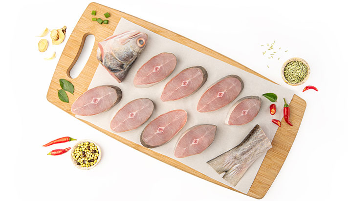 Mackerel, popularly known as Bangda, Aiyla and Bangude, is a boney and firm flesh fish. Our Mackerel is cleaned without any chemicals and gutted, leaving the head and tail intact.